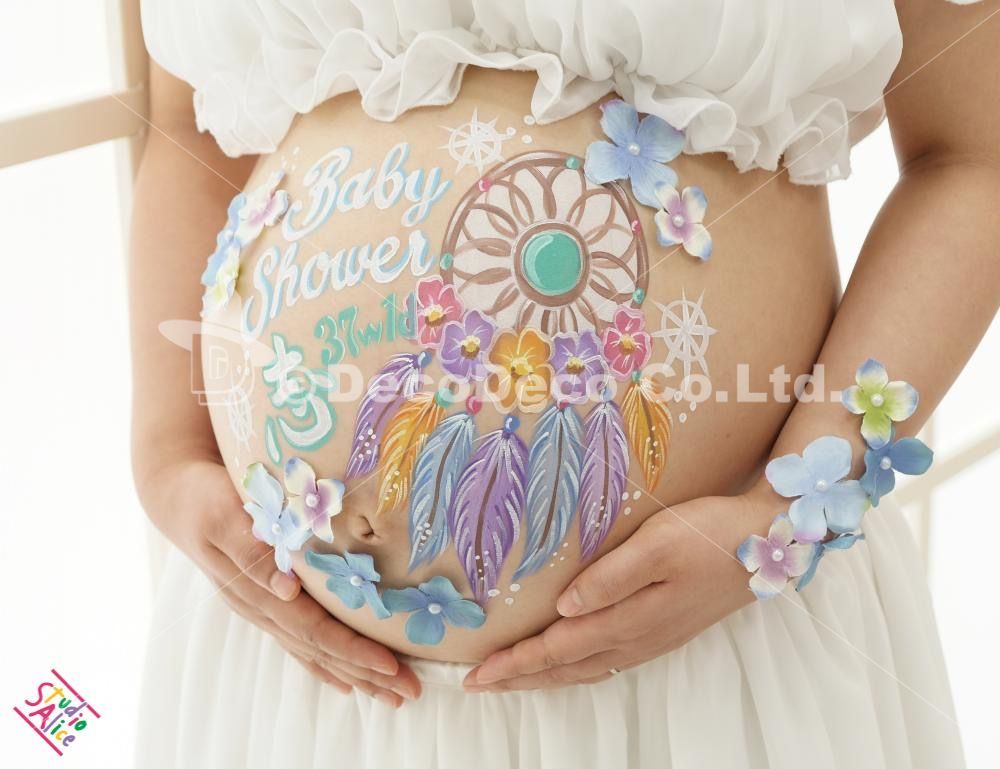 アーティストはJFA日本フェイスペイント協会マタニティペイント資格認定講座講師の赤木みふゆ先生です。